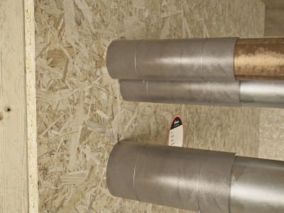Сертифицировано по стандарту EN 1366-3 для переходов неизолирован ных металлических труб и шинопроводов. Негорючая ткань из минераль ной ваты и абляционная охлаждающая обработка со стороны, контактиру ющей с трубой, предотвращают распространение огня за счет индукции между отсеками.