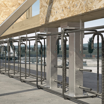 UP LIFT используется для наземного крепления деревянных стен, установленных на железобетонный бордюр. Бордюр заливается после возведения деревянного здания.