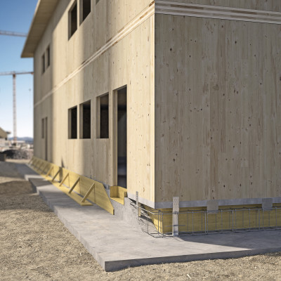 UP LIFT позволяет выстраивать железобетонный бордюр после установки деревянных стен, чтобы исключить эти недочеты. Строитель деревянного здания должен подготовить опоры UP LIFT на железобетонном основании и установить на них стены. После сборки деревянных конструкций можно будет построить бордюр, который будет выступать элементом передачи сжимающих напряжений, исходящих от стен.
