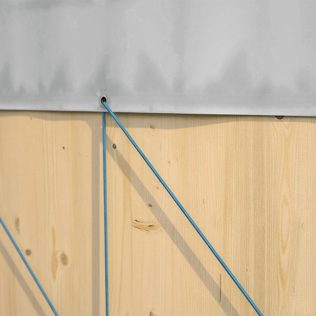 Доступен как в трех стандартных, так и нестандартных размерах и оснащен подъемным крюком для упрощенной установки, а также металлическими люверсами, расположенными через каждый метр, для крепления к крыше.